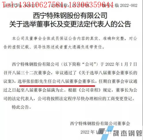 免責聲明:本網站(山東聊城晟杰無縫鋼管廠m.centurybiz.cn)刊載的““70后”張伯影任西寧特鋼董事長”等均源于網絡,版權歸原作者所有,且僅代表原作者觀點,本文所載信息僅供參考。轉載僅為學習與交流之目的,如無意中侵犯您的合法權益,請及時聯系刪除。本網站刊登此篇文章并不意味著本站贊同其觀點或證實其內容的真實性,我們不對其科學性、嚴肅性等作任何形式的保證。如果侵犯了您的版權,請盡快聯系我們予以撤銷,謝謝合作!