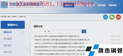 12月22日,河北省工信廳發布《遷安軋一鋼鐵集團有限公司建設項目產能置換方案公告》。