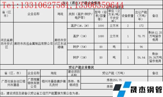 廊坊市洸遠金屬制品有限公司擬出讓(退出)1000m3高爐2座、1080m3高爐1座、80t轉爐2座設備給廣西翅冀鋼鐵有限公司,共計出讓煉鐵產能250.75萬噸,煉鋼產能152.64萬噸。