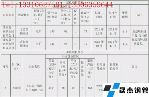 唐山港陸鋼鐵有限公司退出1080m3高爐2座、退出產能182萬噸;75t轉爐2座,退出產能3.5萬噸/年;唐山新寶泰鋼鐵有限公司450m3高爐1座,退出產能5.25萬噸/年;630m3高爐1座,退出產能57.06萬噸/年;60t轉爐2座,退出產能143.99萬噸/年;霸州新利鋼鐵有限公司1080m3高爐1座,退出產能8.75萬噸/年;津西鋼鐵有限公司退出550m3高爐1座,退出產能47.58萬噸/年;50t轉爐2座,退出產能26萬噸/年。共計退出煉鐵產能300.64萬噸,煉鋼產能173.49萬噸,所有項目將于新建項目建成投產前拆除。
