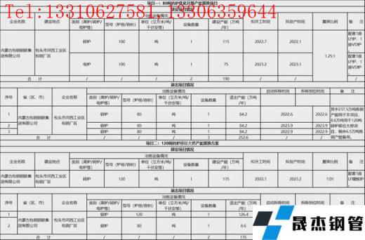 項目一為80t轉爐優化升級產能置換項目:內蒙古包鋼鋼聯集團有限公司分別擬于2022年7月與2023年2月在包頭市河西工業區包無縫鋼管廠內新建100t轉爐1座,產能115萬噸/年;100t電爐1座,產能75萬噸/年。共計新建煉鋼產能190萬噸。同時退出80t轉爐3座,產能252.6萬噸/年。所有項目預計2022年6月—2023年9月拆除。