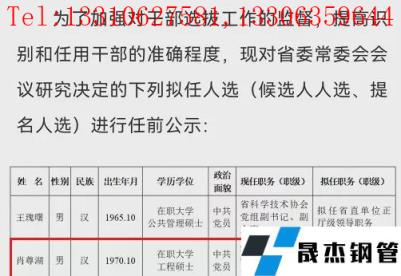 免責聲明:本網站(山東聊城晟杰無縫鋼管廠m.centurybiz.cn)刊載的“大變動!涉及多家鋼企董事長、多地市委書記、北大系主任!”等均源于網絡,版權歸原作者所有,且僅代表原作者觀點,本文所載信息僅供參考。轉載僅為學習與交流之目的,如無意中侵犯您的合法權益,請及時聯系刪除。本網站刊登此篇文章并不意味著本站贊同其觀點或證實其內容的真實性,我們不對其科學性、嚴肅性等作任何形式的保證。如果侵犯了您的版權,請盡快聯系我們予以撤銷,謝謝合作!