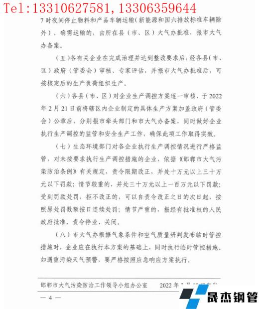 免責聲明:本網站(山東聊城晟杰無縫鋼管廠m.centurybiz.cn)刊載的“限產50%!河北一地再發鋼企限產令!即日起至月底!”等均源于網絡,版權歸原作者所有,且僅代表原作者觀點,本文所載信息僅供參考。轉載僅為學習與交流之目的,如無意中侵犯您的合法權益,請及時聯系刪除。本網站刊登此篇文章并不意味著本站贊同其觀點或證實其內容的真實性,我們不對其科學性、嚴肅性等作任何形式的保證。如果侵犯了您的版權,請盡快聯系我們予以撤銷,謝謝合作!