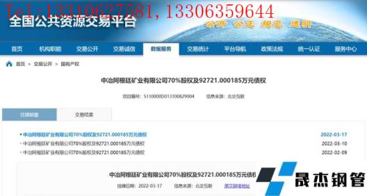 免責聲明:本網(wǎng)站(山東聊城晟杰無縫鋼管廠m.centurybiz.cn)刊載的“6.4億!中冶股份轉讓一鐵礦70%股權及9.27億債權!”等均源于網(wǎng)絡,版權歸原作者所有,且僅代表原作者觀點,本文所載信息僅供參考。轉載僅為學習與交流之目的,如無意中侵犯您的合法權益,請及時聯(lián)系刪除。本網(wǎng)站刊登此篇文章并不意味著本站贊同其觀點或證實其內容的真實性,我們不對其科學性、嚴肅性等作任何形式的保證。如果侵犯了您的版權,請盡快聯(lián)系我們予以撤銷,謝謝合作!