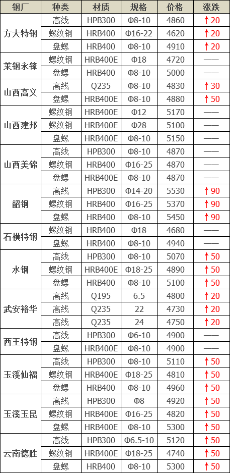 上調12家,占比85.7%,調價幅度20-50元/噸;