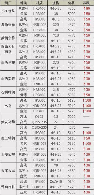上調13家,占比92.9%,調價幅度30-100元/噸;