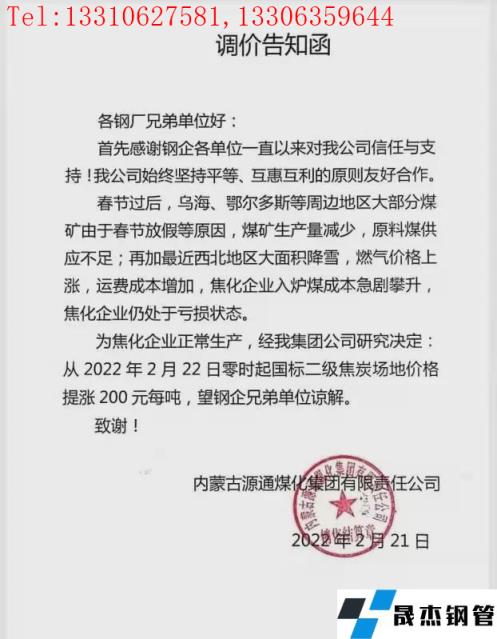 內(nèi)蒙古源通煤化集團(tuán)調(diào)價