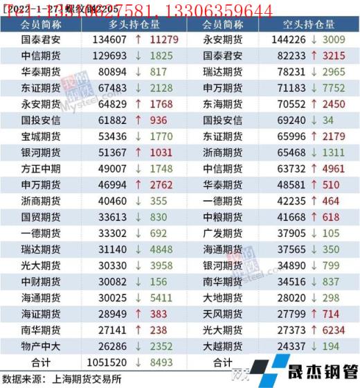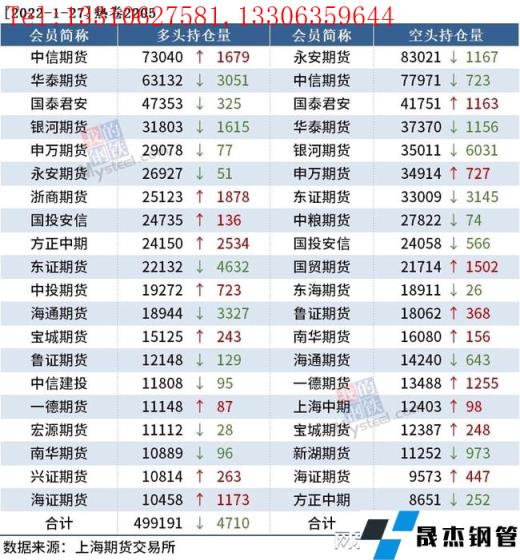 截至1月27日收盤,螺紋鋼2205收4673元/噸,跌0.32%;熱卷2205收4795元/噸,跌0.21%;鐵礦石2205收769元/噸,漲0.46%。