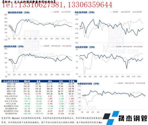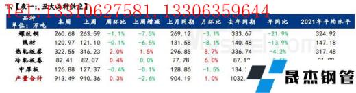 據統計,本周五大品種周消費量除熱軋板卷和中厚板,其余品種均有下降,合計周消費降至757.09萬噸,環比減少94.32萬噸,降幅11.1%;上周五大品種周合計消費851.41萬噸,環比減少61.52萬噸,降幅6.7%。從目前五大品種周消費來看,春節臨近,休市在即,需求基本停滯,周消費量預期內下降。