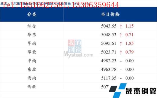 1月28日普鋼絕對價格指數變化:綜合指數5043.65,上漲1.15;螺紋鋼指數4822.08,持平0.0;線材指數5154.47,持平0.0;熱軋板卷指數4902.32,上漲1.19;冷軋板卷指數5399.03,持平0.0;中厚板指數5042.38,上漲0.13。