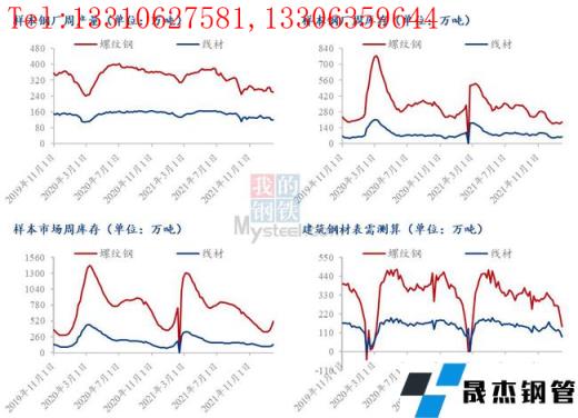 受壓減粗鋼產量、能耗雙控等多因素影響,2021年冬季全國建筑厚壁無縫鋼管生產同比大幅回落。從統計數據來看,2021年11月第一周至2022年1月第四周,全國樣本無縫厚壁鋼管廠家螺紋鋼產量3562.2萬噸、較2020年11月第一周至2021年1月第一周同比減少1015.13萬噸、同比下降22.18,線材產量1695.34萬噸、較去年同期減少322.54萬噸、同比下降15.98%。從供應方面來看,受2021年全國無縫厚壁鋼管廠家冬季(2021年11月份開始)產量同比減量較大影響、2022年全國冬儲資源供應同比收縮。