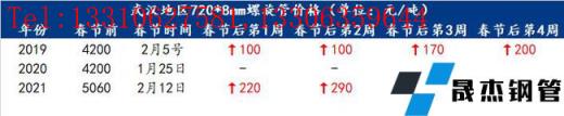 小編匯總近3年春節后四周螺旋管品種主流城市價格變化情況,2019、2021年主流城市螺旋管價格在節后以上漲為主。2020年受公共衛生事件影響,復工延期,需求出現滯后現象,部分城市在春節后價格出現下跌。
