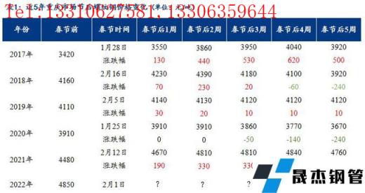 免責聲明:本網站(山東聊城晟杰無縫鋼管廠m.centurybiz.cn)刊載的“近5年春節(jié)前后重慶螺紋鋼市場走勢”等均源于網絡,版權歸原作者所有,且僅代表原作者觀點,本文所載信息僅供參考。轉載僅為學習與交流之目的,如無意中侵犯您的合法權益,請及時聯(lián)系刪除。本網站刊登此篇文章并不意味著本站贊同其觀點或證實其內容的真實性,我們不對其科學性、嚴肅性等作任何形式的保證。如果侵犯了您的版權,請盡快聯(lián)系我們予以撤銷,謝謝合作!