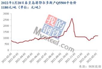 在印尼煤炭出口禁令助推市場看多情緒之下,去年12月觀望等待動力煤港口價格下跌至700元/噸基準價的下游采購和貿(mào)易商一擁而上,紛紛加入搶購大軍。不僅如此,由于今年節(jié)前補庫窗口期短、冬奧會電廠補庫和港口倒掛等利多因素發(fā)酵,秦港Q5500動力煤價格一改12月加速下滑的頹勢,在1月初開始強力反彈,截至1月28日秦皇島港鄂爾多斯產(chǎn)Q5500動力煤平倉價1180元/噸,較上月底增長47.5%,價格曲線也走出了深V趨勢。