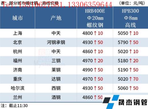 ◎杭州:8日早盤(pán)建材市場(chǎng)價(jià)格整體上漲10,螺沙4830中4830西城4820浙江華宏4710江蘇鑌鑫4710長(zhǎng)達(dá)抗震4820線材中天5020亞新4780聯(lián)鑫黃海盤(pán)螺4900。(單位:元/噸)