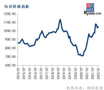 1月份紡織價(jià)格指數(shù)為1046.62,環(huán)比上漲1.07%,同比上漲22.72%。