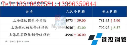 分地區方面,上海螺紋鋼價格指數4973,上漲39.0;上海熱軋板卷價格指數5046,下跌53.0。(單位:元/噸)