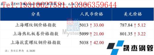 分地區方面,上海螺紋鋼價格指數5013,上漲33.0;上海熱軋板卷價格指數5099,上漲21.0。(單位:元/噸)