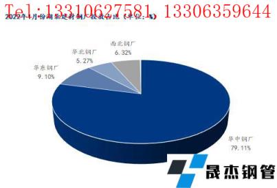 按無縫厚壁鋼管廠家區域來看,華中地區無縫厚壁鋼管廠家投放量82.56萬噸,占比79.1%,環比上月減少13.3%;華東地區無縫厚壁鋼管廠家占比9.1%,月環比增加20.3%;西北、華北、西南無縫厚壁鋼管廠家總占11.8%,月環比增加2.7%。從數據對比看,湖北省內無縫厚壁鋼管廠家1月份投放量月環比減少,其余地區到貨量微幅增加。