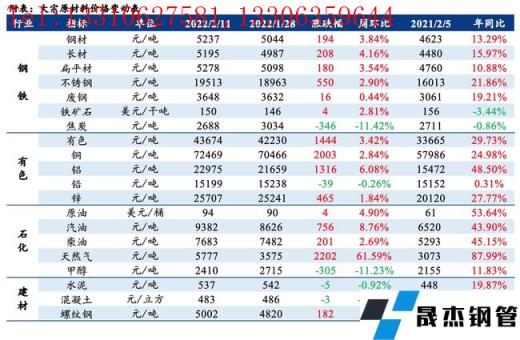 免責聲明:本網站(山東聊城晟杰無縫鋼管廠m.centurybiz.cn)刊載的“周報:大宗原材料價格周報(2.07-2.11)”等均源于網絡,版權歸原作者所有,且僅代表原作者觀點,本文所載信息僅供參考。轉載僅為學習與交流之目的,如無意中侵犯您的合法權益,請及時聯系刪除。本網站刊登此篇文章并不意味著本站贊同其觀點或證實其內容的真實性,我們不對其科學性、嚴肅性等作任何形式的保證。如果侵犯了您的版權,請盡快聯系我們予以撤銷,謝謝合作!