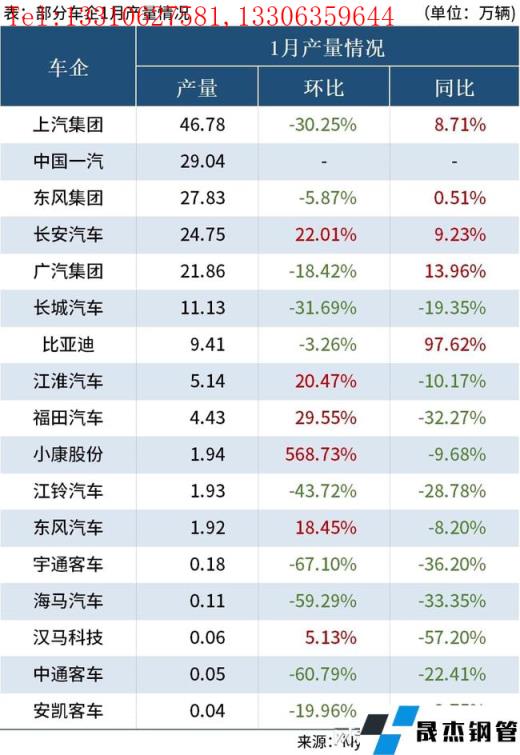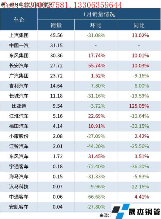 免責聲明:本網站(山東聊城晟杰無縫鋼管廠m.centurybiz.cn)刊載的“1月我國汽車產銷降幅明顯,多數車企呈現雙位數下跌”等均源于網絡,版權歸原作者所有,且僅代表原作者觀點,本文所載信息僅供參考。轉載僅為學習與交流之目的,如無意中侵犯您的合法權益,請及時聯系刪除。本網站刊登此篇文章并不意味著本站贊同其觀點或證實其內容的真實性,我們不對其科學性、嚴肅性等作任何形式的保證。如果侵犯了您的版權,請盡快聯系我們予以撤銷,謝謝合作!