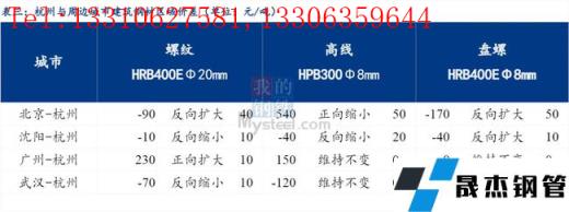 從區域價差來看,今日華北地區與杭州市場螺紋鋼價差繼續反向擴大;東北、華中地區與杭州市場價差繼續縮小;華南地區與杭州市場螺紋鋼價差正向擴大。