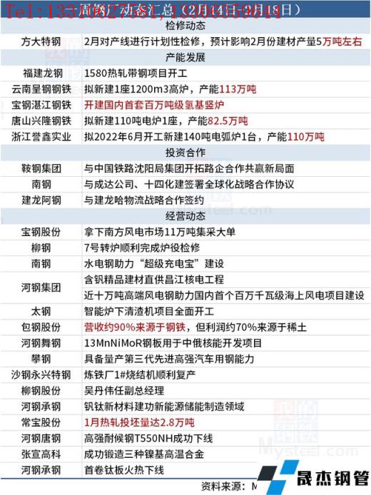 免責聲明:本網站(山東聊城晟杰無縫鋼管廠m.centurybiz.cn)刊載的“一周無縫鋼管廠家動態匯總(2月14日-2月18日)”等均源于網絡,版權歸原作者所有,且僅代表原作者觀點,本文所載信息僅供參考。轉載僅為學習與交流之目的,如無意中侵犯您的合法權益,請及時聯系刪除。本網站刊登此篇文章并不意味著本站贊同其觀點或證實其內容的真實性,我們不對其科學性、嚴肅性等作任何形式的保證。如果侵犯了您的版權,請盡快聯系我們予以撤銷,謝謝合作!