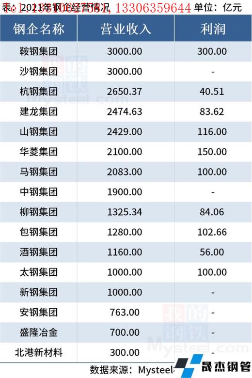 免責聲明:本網站(山東聊城晟杰無縫鋼管廠m.centurybiz.cn)刊載的“16家鋼企2021年營收超2.7萬億元”等均源于網絡,版權歸原作者所有,且僅代表原作者觀點,本文所載信息僅供參考。轉載僅為學習與交流之目的,如無意中侵犯您的合法權益,請及時聯系刪除。本網站刊登此篇文章并不意味著本站贊同其觀點或證實其內容的真實性,我們不對其科學性、嚴肅性等作任何形式的保證。如果侵犯了您的版權,請盡快聯系我們予以撤銷,謝謝合作!