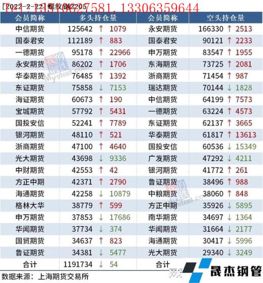 截至2月22日收盤,螺紋鋼2205收4734元/噸,跌1.13%;熱卷2205收4850元/噸,跌1.34%;鐵礦石2205收684.5元/噸,跌0.07%。