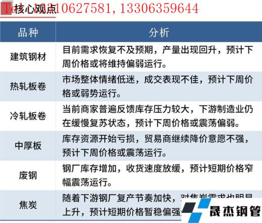一方面,本周無縫厚壁鋼管廠家及下游終端仍處于復工復產進程,但工地復工率低于去年同期,無縫厚壁鋼管廠家及社會庫存均出現攀升,供需壓力偏大,鋼價承壓下跌。另一方面,隨著無縫厚壁鋼管廠家持續復產,對原燃料需求增加,鐵礦石港庫及獨立焦企庫存均出現下降,后期原燃料價格有支撐。此外,電弧爐無縫厚壁鋼管廠家處于盈虧邊緣,鋼價下跌空間或有限。綜合來看,短期鋼價或震蕩偏弱運行。