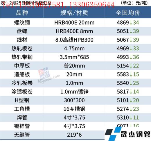 建筑厚壁無縫鋼管:2月25日,全國31個主要城市20mm三級抗震螺紋鋼均價4869元/噸,較上個交易日下跌34元/噸。由于冬奧會限產影響邊際放松,本周建材產量繼續回升,同比減少54萬噸,但同時需求邊際好轉,不過庫存仍然處于累庫階段。短期來看,近期影響市場運行不確定因素較多,大宗商品價格波動劇烈,同時目前需求恢復不及預期,但產量出現回升。短期在低供給低需求狀態下,預計下周國內建筑厚壁無縫鋼管或將維持偏弱運行。