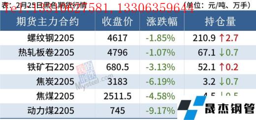 25日,黑色期貨全線下跌。其中,煤炭期貨“三兄弟”大幅下挫,螺紋鋼、熱軋板卷、鐵礦石等期貨早盤弱勢下行,尾盤悲觀情緒緩解,價格有所拉升。