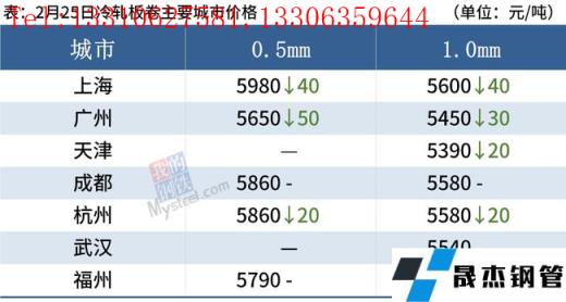 冷軋板卷:2月25日,全國24個主要城市1.0mm冷卷均價5540元/噸,較上個交易日下跌25元/噸。下游終端態度謹慎,按需采購為主今天整體成交表現不理想。就下周市場而言,當前商家普遍反饋庫存壓力較大,當前主流操作以出貨為主。需求方面,下游制造業仍在緩慢復蘇狀態,但未見明顯起色。綜合來看,預計下周全國冷軋板卷價格或將震蕩偏弱運行。