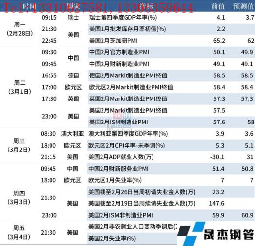 點(diǎn)評(píng):2月是制造業(yè)生產(chǎn)淡季,季節(jié)性因素導(dǎo)致PMI可能下降,預(yù)計(jì)制造業(yè)PMI可能在49.8%左右,穩(wěn)增長(zhǎng)力度加大有望推動(dòng)未來(lái)PMI指數(shù)上升。主要無(wú)縫厚壁鋼管廠家建筑厚壁無(wú)縫鋼管庫(kù)存上升,可能是基建投資預(yù)期改善帶來(lái)庫(kù)存需求。主要受疫情散發(fā)的影響,預(yù)計(jì)2月非制造業(yè)PMI下降到50.6%左右。