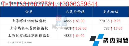 2月28日普鋼絕對(duì)價(jià)格指數(shù)變化:綜合指數(shù)5114.66,上漲19.92;螺紋鋼指數(shù)4873.13,上漲4.14;線材指數(shù)5204.81,上漲6.33;熱軋板卷指數(shù)4981.07,上漲68.26;冷軋板卷指數(shù)5481.55,上漲8.64;中厚板指數(shù)5108.47,上漲0.3。