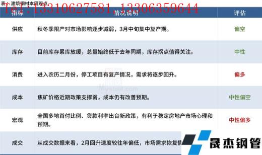 本周建筑厚壁無縫鋼管價格呈現修復上漲的概率大,不過北方需求恢復較慢、產量回升快,南方市場表現相對要活躍一些,區域市場價格可能分化,價格在修復過程中或將呈現南強北弱的特點。