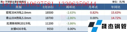 近期鎳鐵成交減少價格企穩,部分成交下探,而304廢不銹鋼價格下調,不銹鋼方面無縫厚壁鋼管廠家挺價心態減弱,目前3月份無縫厚壁鋼管廠家排產并無減產計劃,但接單相對乏力,后續到貨或將持續增加,預計本周304現貨價格高位盤整運行。