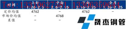 冬儲期間,也就是2月上旬與中旬FDTG建材南昌市場采取保價政策,即1月26日至2月5日無縫厚壁鋼管廠家定價為2月16日至2月25日這旬日定價均值,2月6日至2月15日無縫厚壁鋼管廠家定價為2月26日至3月7日期間日定價均值,當前2月上旬與下旬的無縫厚壁鋼管廠家定價已出,中旬定價還未出。南昌市場FDTG螺紋鋼成交價與無縫厚壁鋼管廠家每日定價差值,如下表所示。
