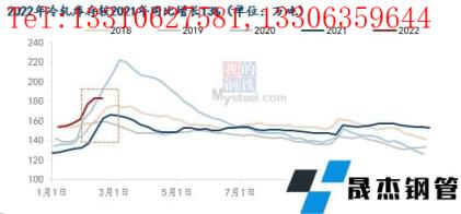 認為冷軋基本面對熱卷價格影響偏小,主要在于;1、由于考慮到訂單、排產、后續市場情況等多種因素,無縫厚壁鋼管廠家生產計劃需提前制定,因此無縫厚壁鋼管廠家不會輕易減少產量。我們分析歷史情況發現,在虧損較大后,冷軋產量才會有明顯的下降。目前冷軋無縫厚壁鋼管廠家還有200元/噸左右的利潤,加上3月訂單接近飽和,所以我們預計短期冷軋無縫厚壁鋼管廠家不會減產;2、去年同期(2021年2月),由于汽車、出口需求旺盛,冷軋缺貨,庫存相比其他品種偏低,造成今年庫存同比上漲較為明顯;3、熱軋價格主要取決于自身的基本面,在目前總庫存絕對值處于低位的情況下,熱軋本身基本面有較強支撐,較難受冷軋影響出現價格崩塌。