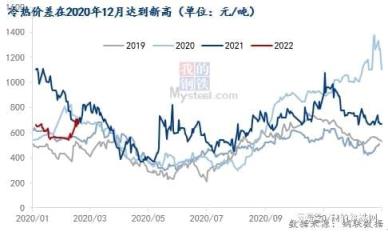 去年同期(2021年2月),由于汽車以及直接出口需求旺盛,冷軋強熱軋弱的局面明顯,冷軋總庫存累庫高度同比降幅達20%,冷熱價差也拉到新高,月均值達800元/噸以上。在去年同期冷軋“如火如荼”的行情襯托下,顯得今年的冷軋春天愈發“寒冷”。