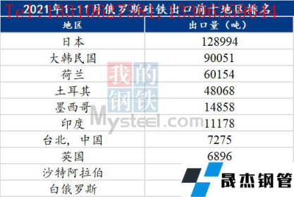 2021年1-11月,俄羅斯硅鐵合計出口39萬噸,其中出口至日本12.899萬噸,韓國9萬噸,印度1.12萬噸,占據(jù)總出口量約59%.。據(jù)俄羅斯相關(guān)企業(yè)透露,2021年俄羅斯硅鐵產(chǎn)量56.48萬噸,出口量42.54萬噸。