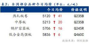 今日全國部分品種均價漲勢放緩,整體漲幅為6~41元/噸。