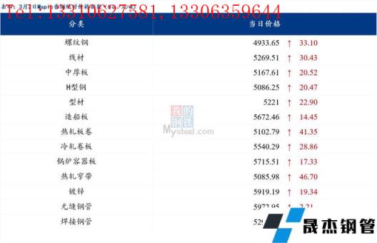 3月2日普鋼絕對價格指數變化:綜合指數5189.24,上漲32.04;螺紋鋼指數4933.65,上漲33.1;線材指數5269.51,上漲30.43;熱軋板卷指數5102.79,上漲41.35;冷軋板卷指數5540.29,上漲28.86;中厚板指數5167.61,上漲20.52。
