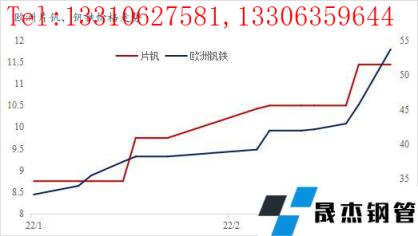 2月末俄對烏展開特別軍事行動(dòng),引發(fā)俄經(jīng)濟(jì)制裁。國際市場對俄羅斯Evraz公司能否正常出口釩產(chǎn)品擔(dān)憂情緒加重,導(dǎo)致歐洲釩產(chǎn)品價(jià)格快速上漲,2月24日至3月2日80釩鐵由46-48美元/公斤上升至50.5-57美元/公斤,價(jià)格上漲了4.5-9美元/公斤。