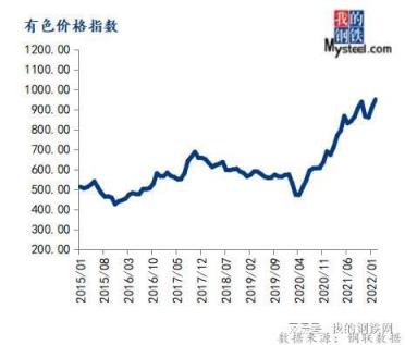 2月份有色價格指數為949.46,環比上漲4.23%,同比上漲33.23%。