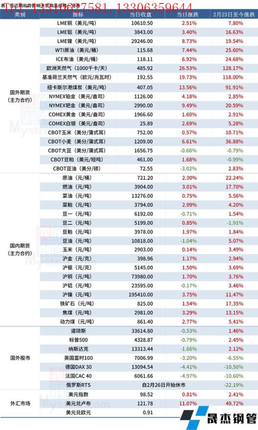 免責聲明:本網站(山東聊城晟杰無縫鋼管廠m.centurybiz.cn)刊載的“受近期局勢影響大宗商品價格一覽表(3月4日)”等均源于網絡,版權歸原作者所有,且僅代表原作者觀點,本文所載信息僅供參考。轉載僅為學習與交流之目的,如無意中侵犯您的合法權益,請及時聯(lián)系刪除。本網站刊登此篇文章并不意味著本站贊同其觀點或證實其內容的真實性,我們不對其科學性、嚴肅性等作任何形式的保證。如果侵犯了您的版權,請盡快聯(lián)系我們予以撤銷,謝謝合作!