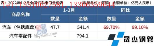 免責(zé)聲明:本網(wǎng)站(山東聊城晟杰無縫鋼管廠m.centurybiz.cn)刊載的“海關(guān)總署:1-2月中國出口汽車47.7萬輛,同比增99.10%”等均源于網(wǎng)絡(luò),版權(quán)歸原作者所有,且僅代表原作者觀點,本文所載信息僅供參考。轉(zhuǎn)載僅為學(xué)習(xí)與交流之目的,如無意中侵犯您的合法權(quán)益,請及時聯(lián)系刪除。本網(wǎng)站刊登此篇文章并不意味著本站贊同其觀點或證實其內(nèi)容的真實性,我們不對其科學(xué)性、嚴(yán)肅性等作任何形式的保證。如果侵犯了您的版權(quán),請盡快聯(lián)系我們予以撤銷,謝謝合作!