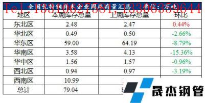 1、據(jù)對全國29個城市的貿(mào)易商跟蹤,現(xiàn)全國優(yōu)特鋼棒材樣本總庫存79.04萬噸,環(huán)比下降6.08萬噸,降幅7.14%,同比下降12.73萬噸,降幅13.87%。