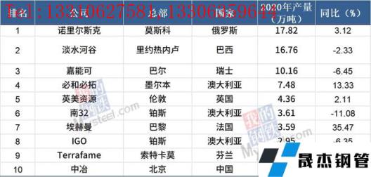 2 .全球十大鎳生產商