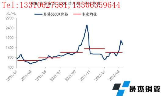 3月供需緊張疊加國際煤價上漲,帶動國內(nèi)上漲。3月重大會議及賽事召開,以及貴州煤礦事故發(fā)生,煤炭主產(chǎn)區(qū)安全檢查將加嚴,同時多地疫情反復以及海外地緣沖突影響全球煤炭資源供應結(jié)構(gòu)改變,我國進口煤倒掛嚴重,導致企業(yè)轉(zhuǎn)向國產(chǎn)礦采購增多,但國內(nèi)煤礦增產(chǎn)空間有限,導致3月煤炭供應緊張情況或加劇。3月天氣逐步轉(zhuǎn)暖,中下旬北方取暖季結(jié)束,煤炭需求將有所下降。此外,3月全國疫情爆發(fā),建筑業(yè)施工單位停工增多,制造業(yè)生產(chǎn)以及其他行業(yè)也受到一定影響,全國用電需求難保持高增長,非發(fā)電用煤需求較好,整體煤炭需求表現(xiàn)依然尚可。目前,控價格方面,經(jīng)批準的長協(xié)價為570-770元(以下均對應5500大卡)要嚴格執(zhí)行,基準價所有煤炭企業(yè)按675元執(zhí)行,坑口價不得超700元,港口不得超900元,管控長協(xié)煤力度大,市場煤受限制不大,需求較好,疊加海外地緣沖突影響國際煤價大漲,進而支撐煤價出現(xiàn)大幅上漲。不過,在依法加強市場監(jiān)管以及陸續(xù)釋放煤礦增產(chǎn)信息下,煤價沖高后出現(xiàn)回落。
